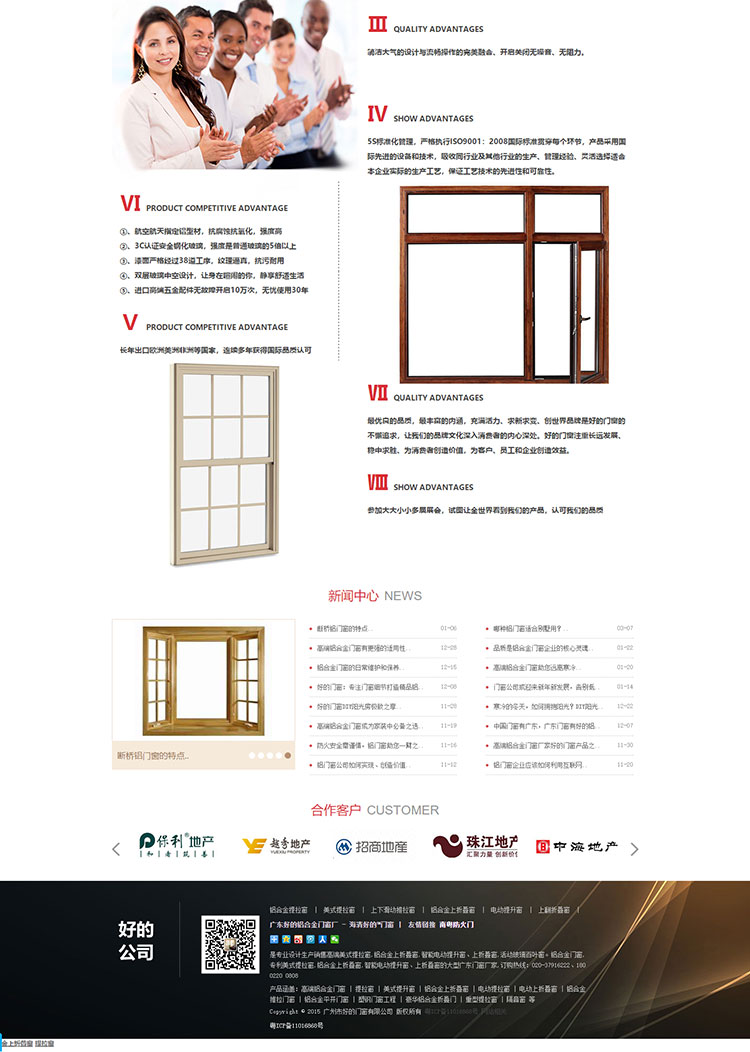 廣州市好的門窗有限公司是專業生產DIY陽光房、鋁合金門窗、電動卷簾及塑鋼門窗的企業。擁有先進配套齊全的鋁型材生產、檢測設備及門窗精加工設備,并擁有自主開發設計鋁型材能力及門窗精加工技術的大型鋁型材、門窗廠。集鋁材生產、加工、銷售及門窗精加工制造為一體的現代化公司,15年初在北非國家阿爾及利亞投資建設占地百余畝的大型鋁合金型材擠壓廠。本公司具有自主進出口權,近年來公司還致力于海外市場的拓展,產品遠銷南美,歐洲,中東、東南亞、非洲等全球各個國家。