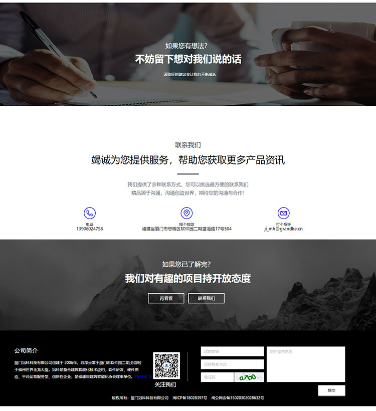 廈門冠科科技有限公司創建于 2006年,總部坐落于廈門市軟件園二期,分部位于福州世界金龍大廈。冠科是整合建筑智能化技術應用、軟件研發、硬件供應、平臺運營服務型、創新性企業,是福建省建筑智能化協會理事單位。